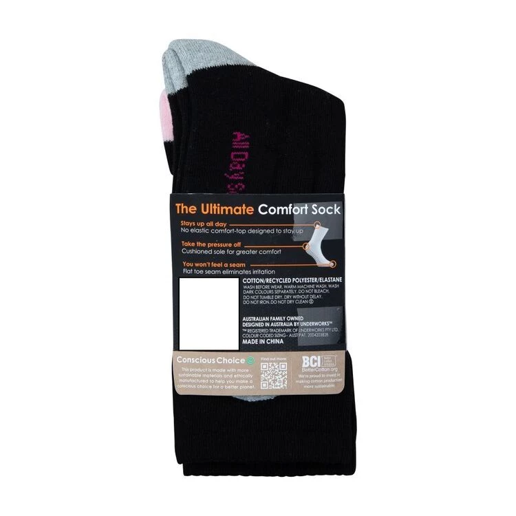 The Underworks Ladies Heel & Toe Cushion Crew 2 Pack is the ultimate comfort sock with its fully cushioned sole and no elastic comfort top design that helps these socks stay up all day. Made from soft and durable cotton rich material, this two pack also features a flat toe seam to eliminate any irritation to your feet.