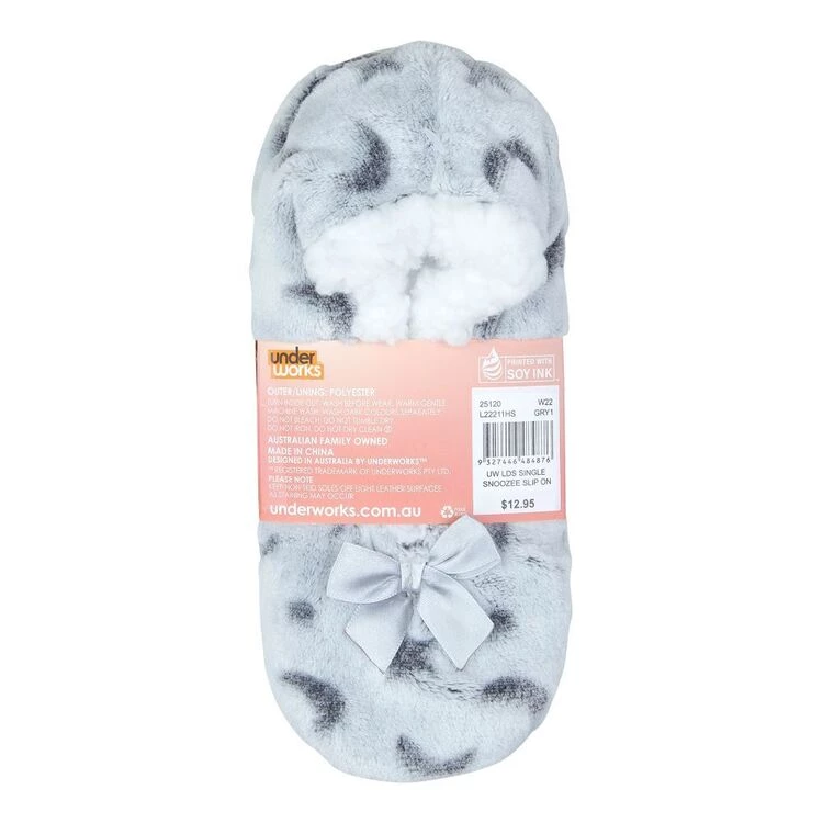 The Underworks Snoozes Slip On is the perfect winter socks for the season to keep your feet warm and cosy all day. Made from soft and plush polyester material, these home socks also have grip soles to help prevent slipping on wet or smooth surfaces and feature a dainty bow design for added comfort and style.